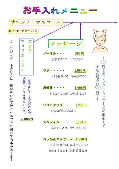 エステメニュー