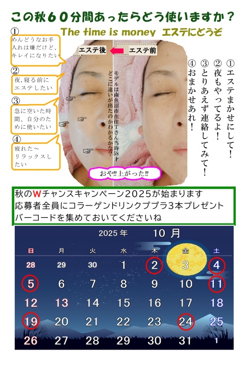 ちょっとお顔に元気がないなあと思ったら、早めのエステにお出かけくださいませ